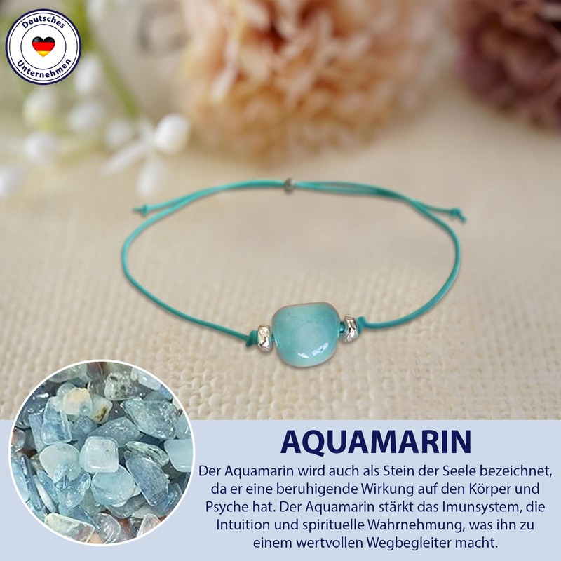 - Natural aquamarine stone: the aquamarine is considered a stone of the soul. It has a calming effect on the body and the psyche and is also said to strengthen the immune system.