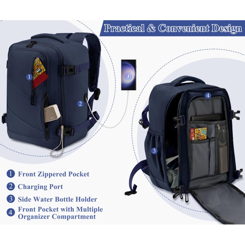 - Practical extras and ideal gift: Built-in USB port for convenient charging of your devices on the go (power bank not included). The travel backpack combines style and functionality and is an ideal gift for men and women for Valentine's Day, Mother's Day, Father's Day, Christmas, birthdays or simply as a practical surprise for frequent travellers