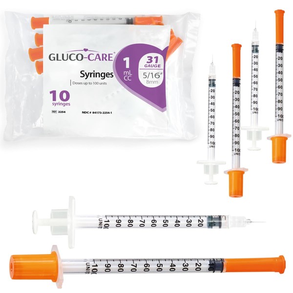 GLUCO-CARE 1 ml/cc Syringes 31G x 5/16’’ (8mm), Orange Cap, 10 pcs/bag
