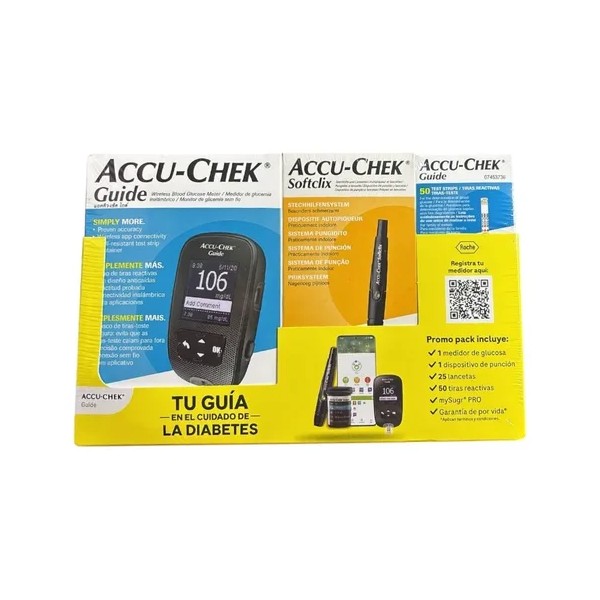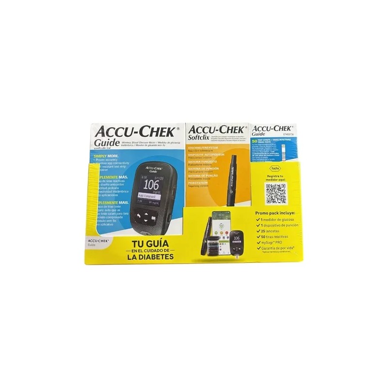 🩺 KIT GLUCÓMETRO ACCU-CHEK GUIDE + 50 TIRAS + 25 LANCETAS