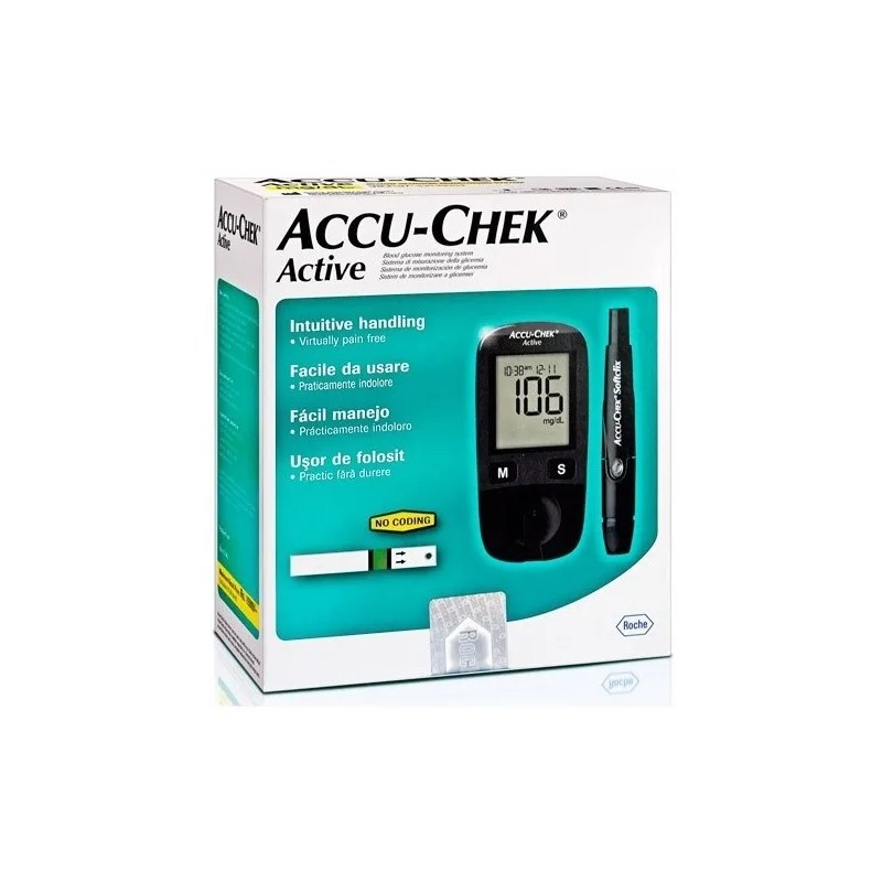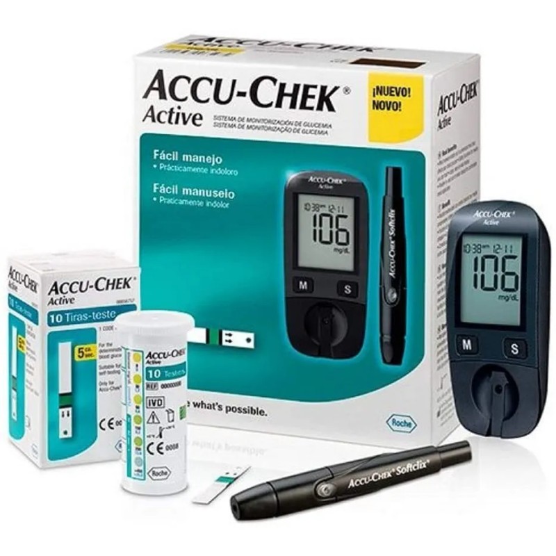 Este modelo cuenta con una pantalla clara y amplia que facilita la lectura de los resultados, además de un sistema intuitivo que permite realizar la prueba con comodidad. Compatible con las tiras reactivas Accu-Chek Active (color verde), garantiza una experiencia de monitoreo eficiente y segura.