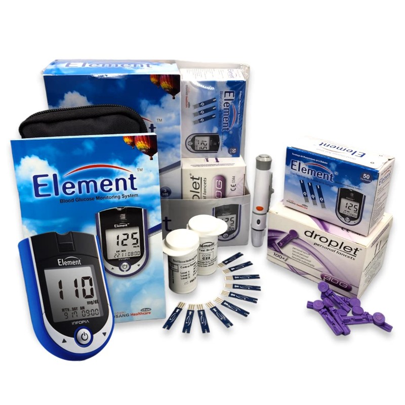 Glucómetro Element Kit + 50 Tiras Reactivas + 100 Lancetas