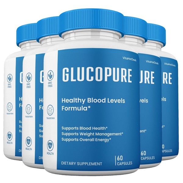 GlucoPure Capsules Blood Support, Gluco Pure Glyco Pills Supplement (5 Pack)