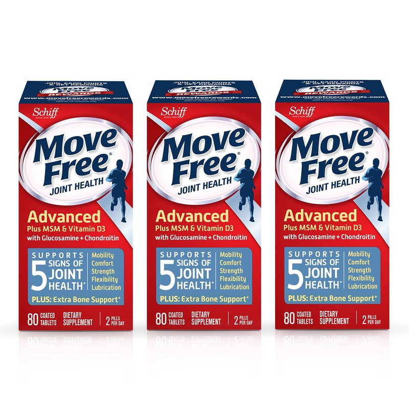 Glucosamine and Chondroitin Plus MSM & D3 Advanced Joint Health Supplement Tablets, Move Free (80 Count In A Box), Supports Mobility, Comfort, Strength, Flexibility and Lubrication* (Pack of 3)
