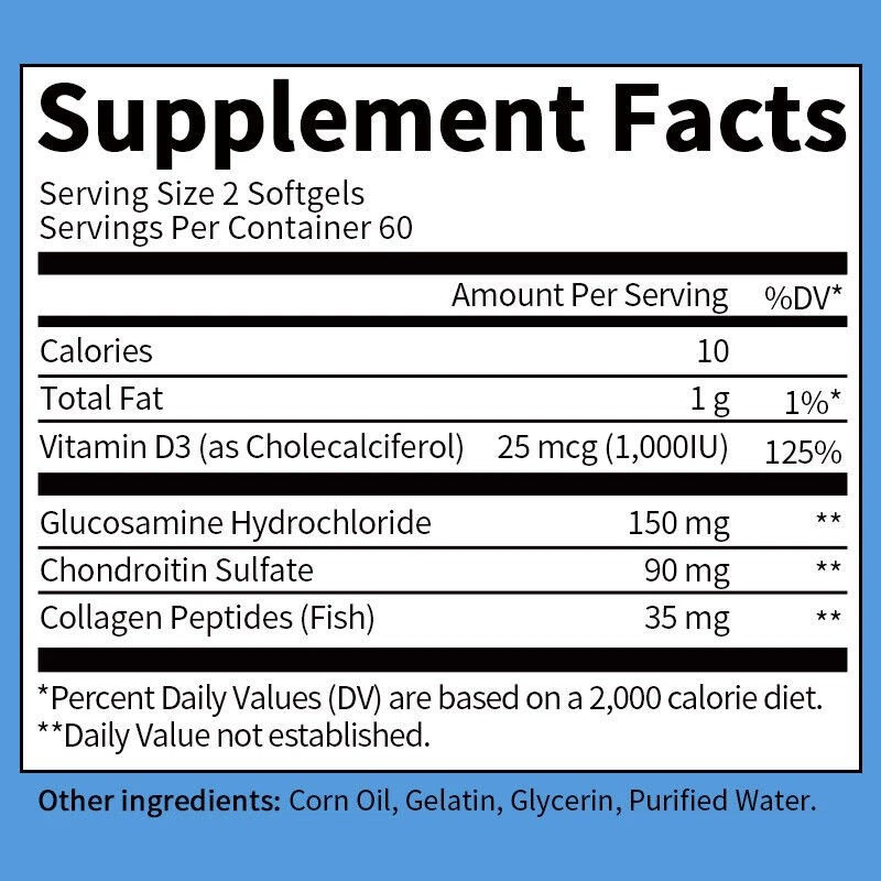 Active Ingredients: | Vitamin D3 (Cholecalciferol), Glucosamine Hydrochloride,Chondroitin Sulfate Sodium |