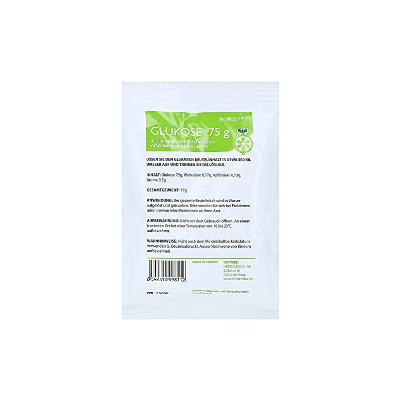 - Glucose 75 g Limettenpulver zum Einnehmen