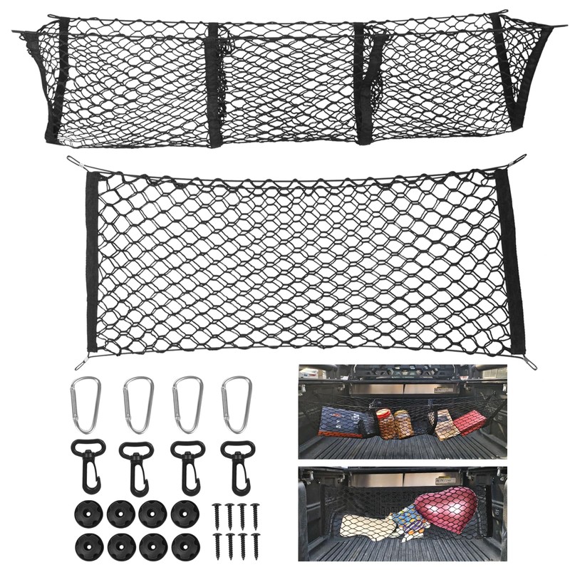 - MULTI-VEHICLE APPLICABILITY: Designed with versatility in mind, the Car Cargo Net fits a wide range of vehicles, including trucks, SUVs and cars. Whether it's a truck cargo net, car cargo net or organizer bed net, it provides a solid cargo securing and stowing solution to ensure your items are secure and don't slide around during transit.