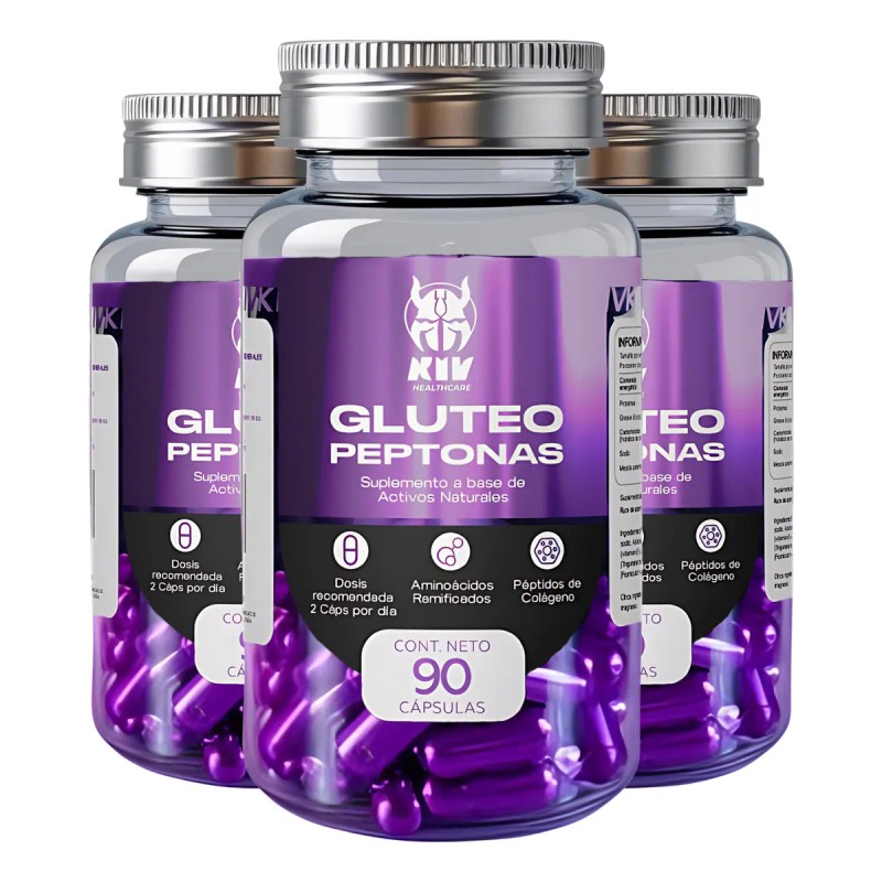 Glúteo Peptonas Kiv Crecimieto Muscular 90 Cáps 3 Frascos