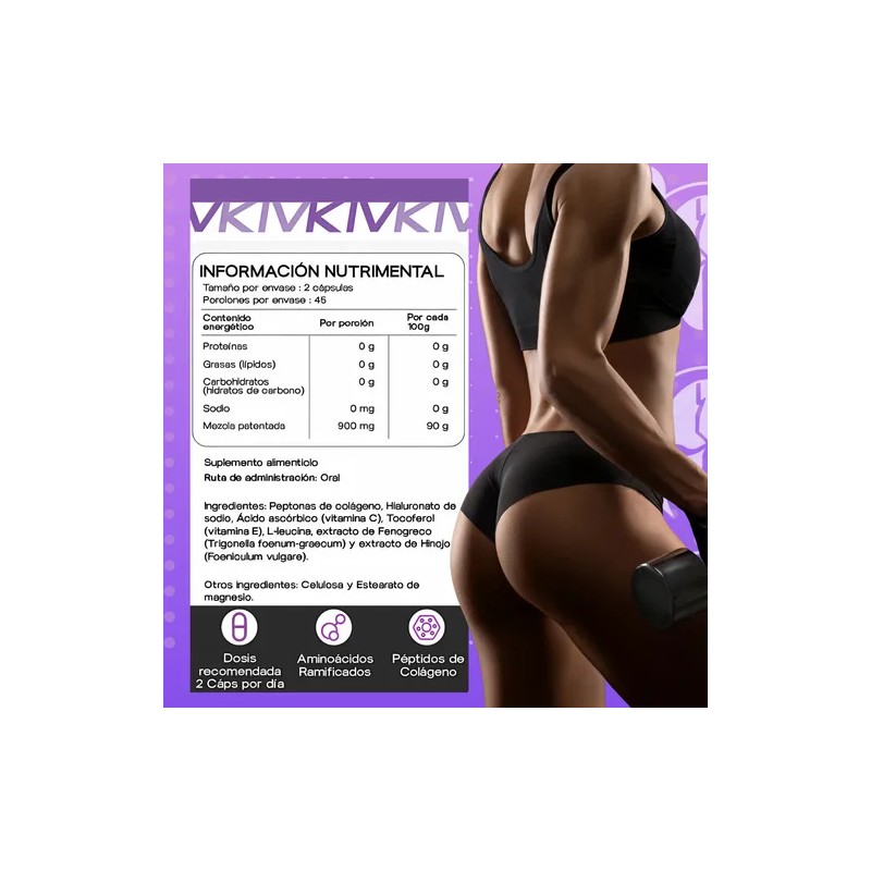 🍑 Glúteo Peptonas Kiv – 90 Cápsulas x 3 Frascos