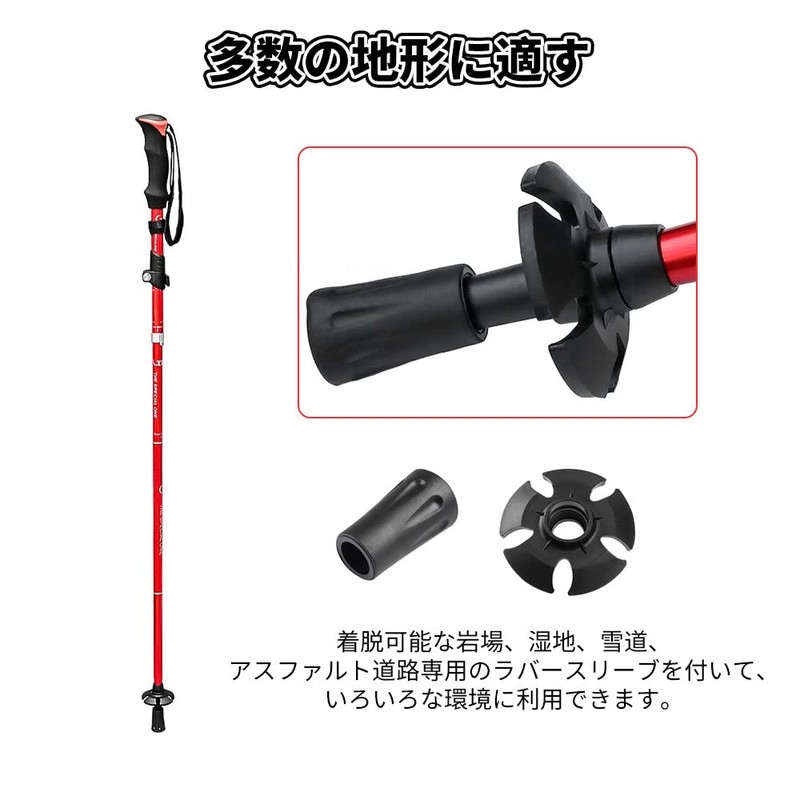 - ♥「多数の地形に適す」トレッキングポールの先端が上質なタングステン合金を採用しています、高い硬さ、耐磨耗、良い強さと靱性。着脱可能な岩場、湿地、雪道、アスファルト道路専用のラバースリーブを付いて、いろいろな環境に利用できます。収納バッグも付いて、使わない時は、リュックに入れて、気軽に友達とハイキングや旅行を楽しめます。