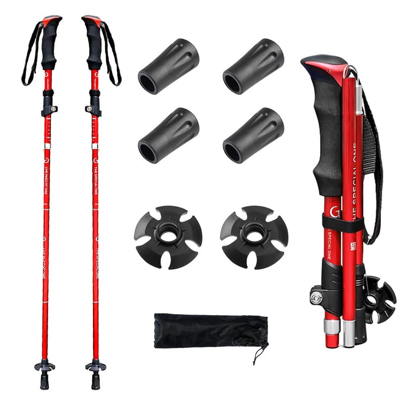 Glvaner トレッキングポール 2本セット 折りたたみ 超軽量 トレッキングステッキ アルミ製 5段伸縮式 登山ストック ウォーキングポール コンパクト 長さ調整可能 お花見 山登り ハイキング アウトドア (レッド)