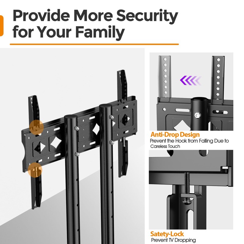 - Space Saving TV Carts- Low Profile Design: Our tv mount stand can also be used behind your small house or small space to avoid wall mounting, also you can simply go to place a tv table in front of it. The TV is not the center of attention in your living room, tv cart with wheels can be pushed back against the wall when not being used. When someone wants to watch it, just simply pull this tv stand with mount out and turn on the TV.