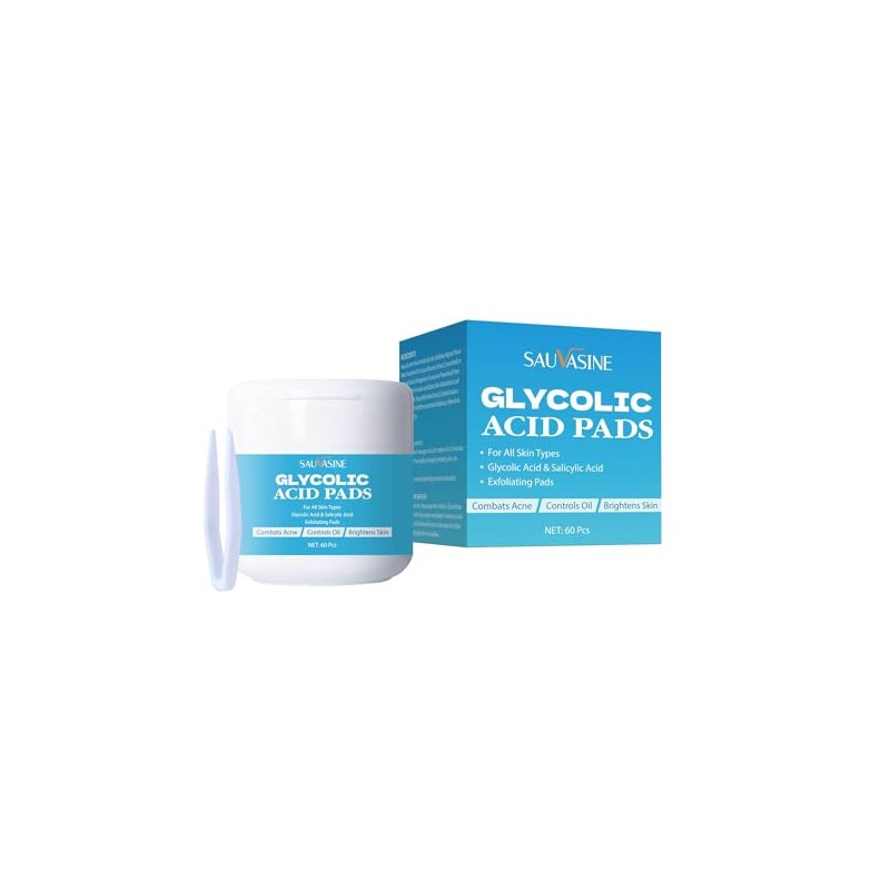 Glycolic Acid Pads, Exfoliates Surface Skin and Reduces Fine Lines and Wrinkles, 60Pads