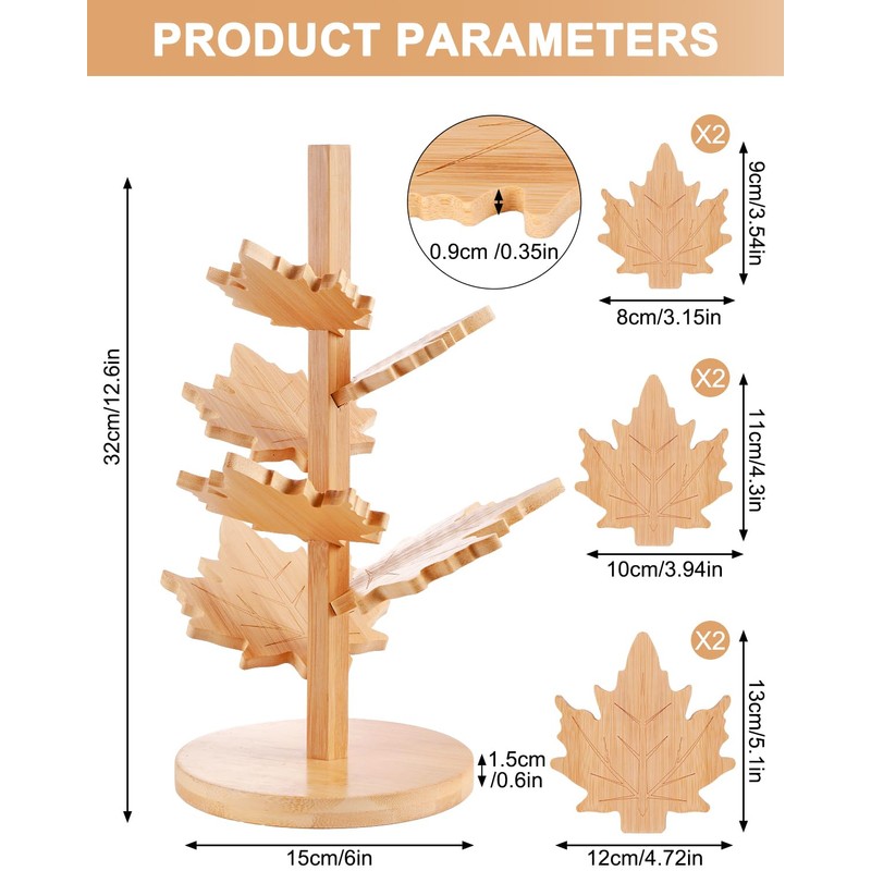 - Tree Shaped Insulating Mat Set: The trivet tree set consists of six maple leaf shaped insulating mats of different sizes, made of sturdy material to resist scratches and heat damage, taking good care of your table tops