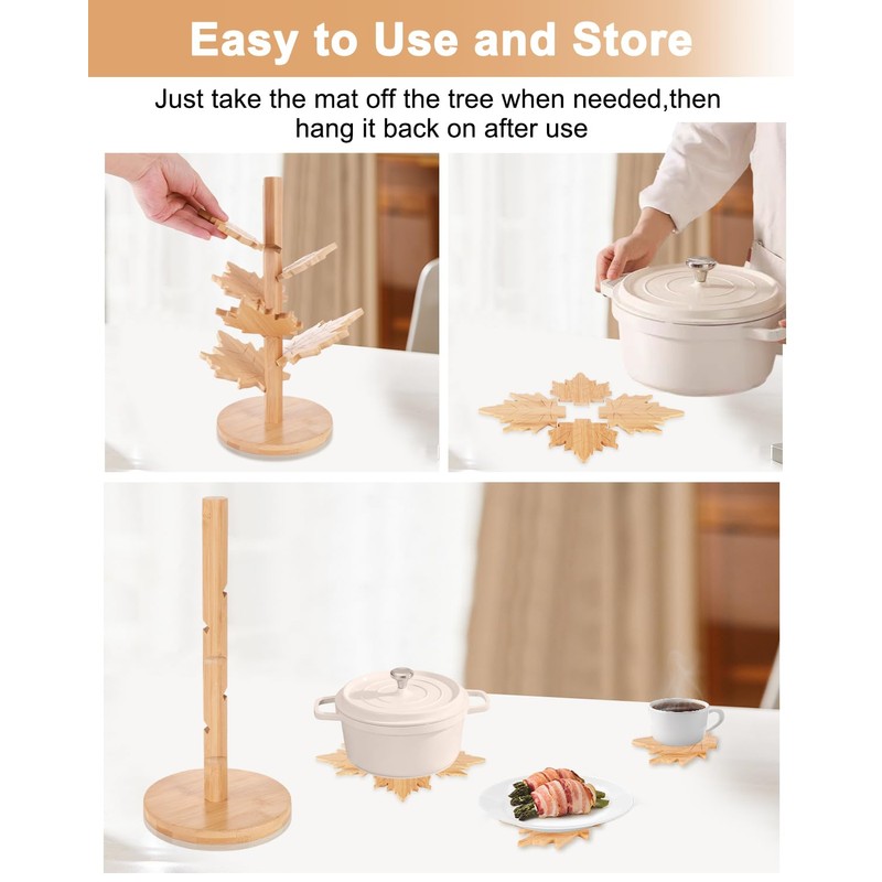 - Heat Resistant and Durable: Trivet set has good heat resistance, not easy to deform and can be reused. The daily cleaning of the tree coaster is also very simple, a damp cloth will wipe it clean, saving time and energy, and maintaining the beauty of the mat for a long time