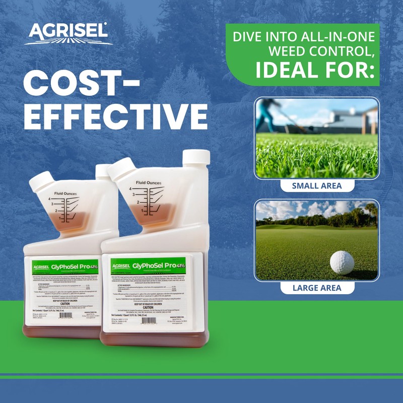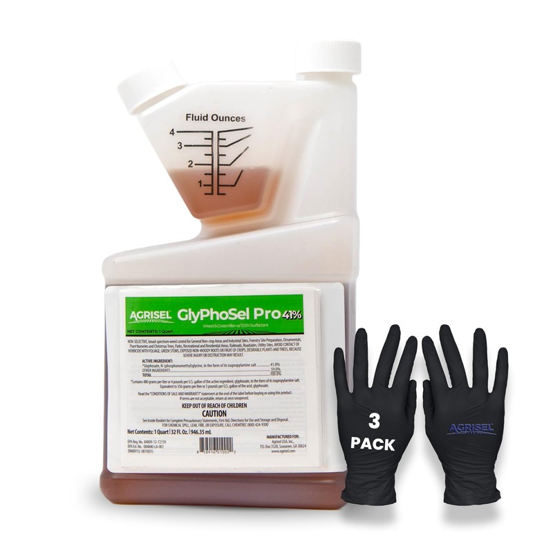 Agrisel GlyPhoSel Pro Weed Killer, Tackles Hard-to-Kill Weeds, Low-Odor, Easy Mixing, Pet Safe, Includes 3-Pack of Agrisel Protective Gloves, 32 Ounces