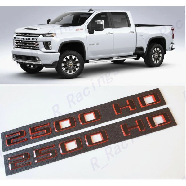 GM AUTO 2PC Black Red 2500 HD Emblem Nameplate 2019-2023 Silverado 2500HD 2500 HD