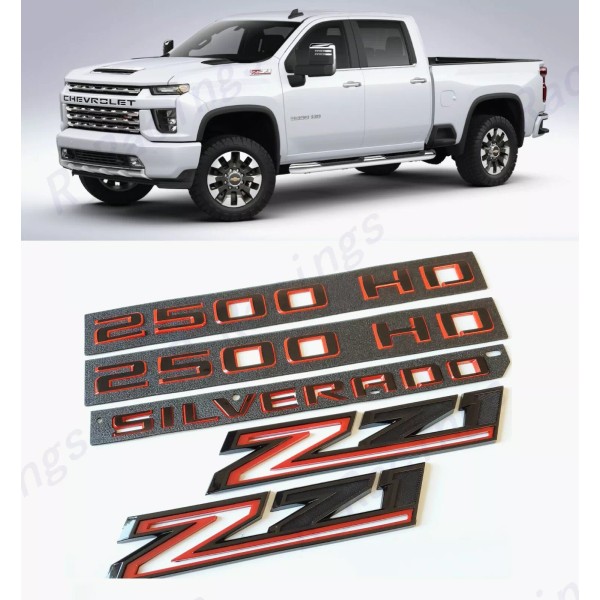 GM Auto Black Red Doors 2500HD Tailgate Silverado Fender Z71 Emblems 2019-2023 2500 HD