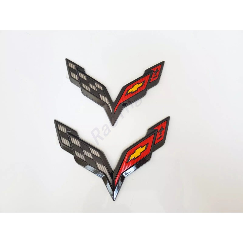 GM For 2014-2019 Corvette C7 Gloss Black Front & Rear & Stingray Cross Flags Emblem