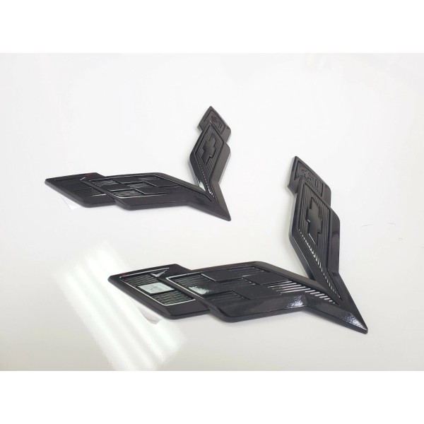 GM For 2014-2019 Corvette C7 Whole Glossy Black Front & Rear Set Cross Flags Emblem