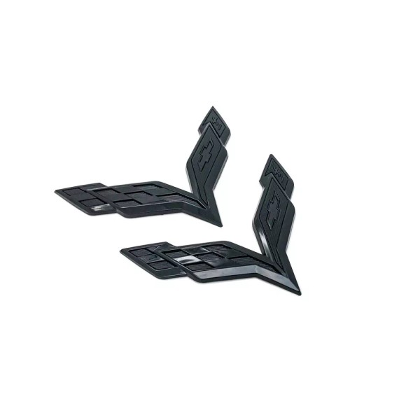 GM Front & Rear Set Cross Flags Emblem For 2014-2019 Corvette C7 Whole Glossy Black