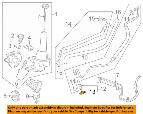 The part or sub-assembly you are purchasing is a Genuine OEM Factory Original part sold by an authorized Genuine OEM parts reseller. The part is not "like OEM", it is the Genuine OEM part sold by the vehicle manufacturer.The part or sub-assembly you are buying may be referenced on a diagram above. The diagram above is a Genuine Factory image from the vehicle manufacturer showing the entire assembly surrounding the part or sub-assembly you are purchasing. ONLY the single part or sub-assembly specified in the callout "Part Ref# on Diagram" is being sold to you. Parts are shown individually with their own Ref #, while sub-assemblies may show multiple parts within a square or circle in the diagram with its own corresponding Ref #. You can find the part or sub-assembly being sold by locating the correct Part Reference # on the diagram.
