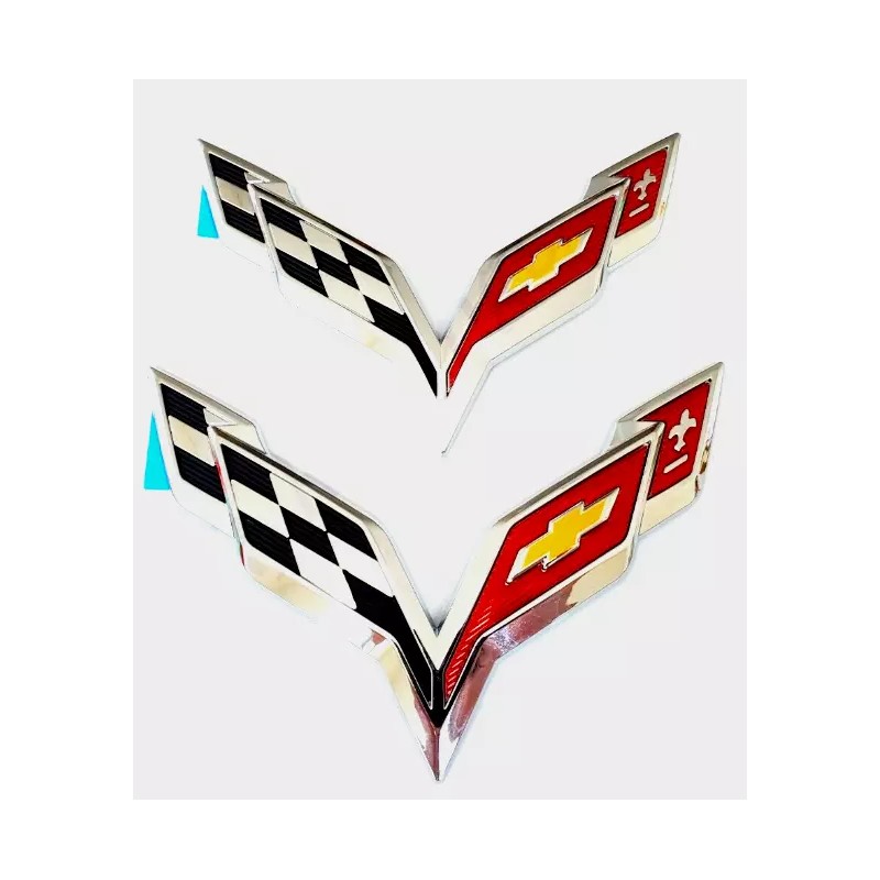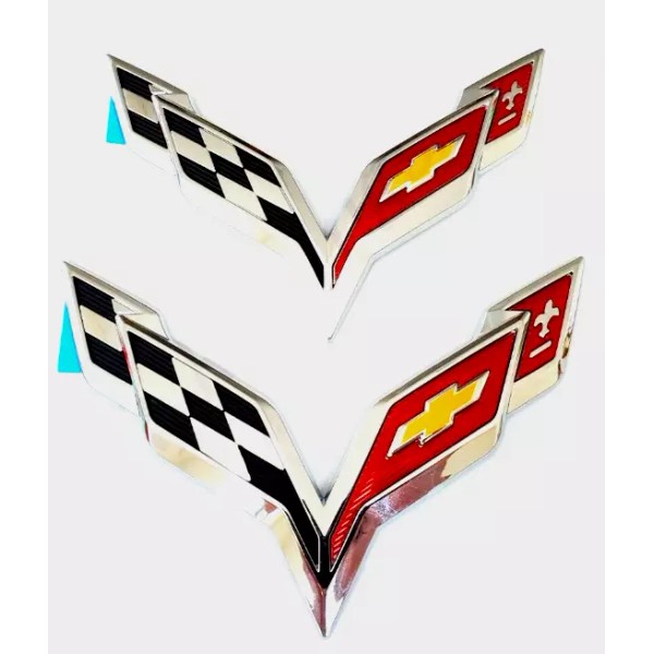 GM Pair Fits 2014-2019 Corvette C7 Emblem Cross Flags Badge 3D Logo (Chrome)