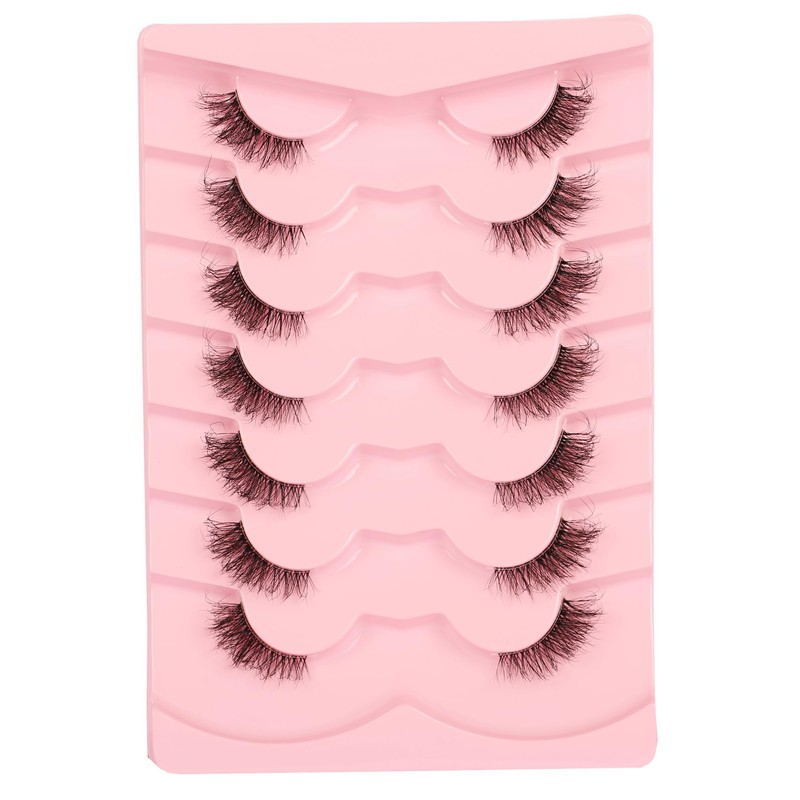 Gmagictobo False Eyelashes Fluffy Wispy Half Lashes Cat Eye Look Natural Clear Band Eyelashes 7 Pairs