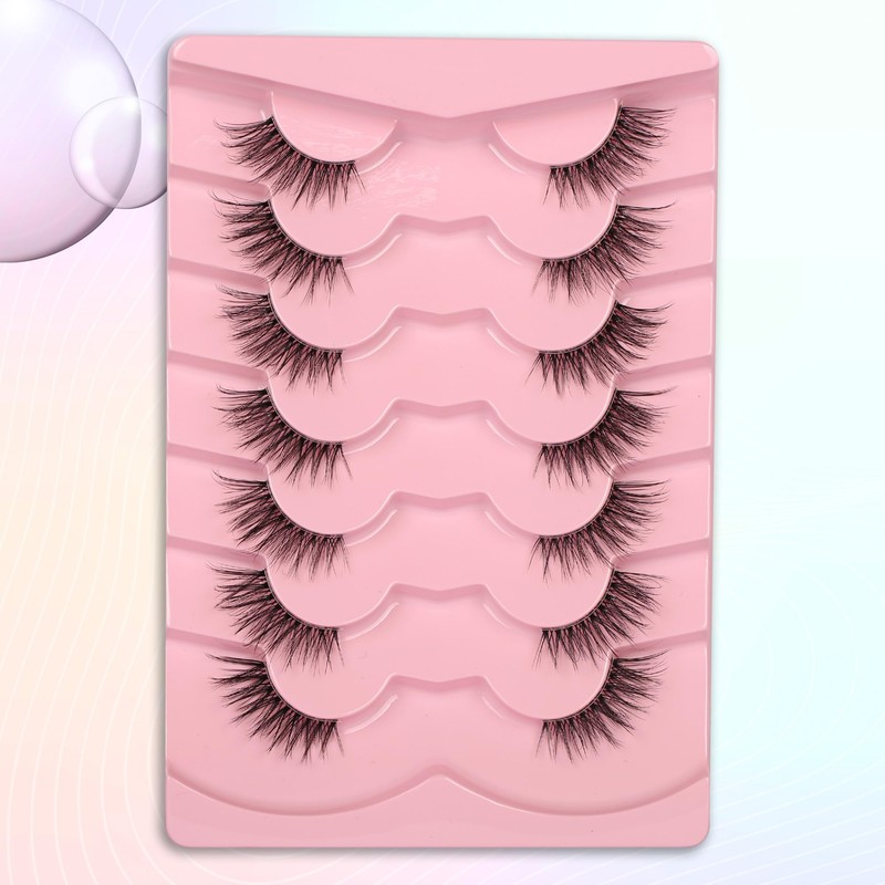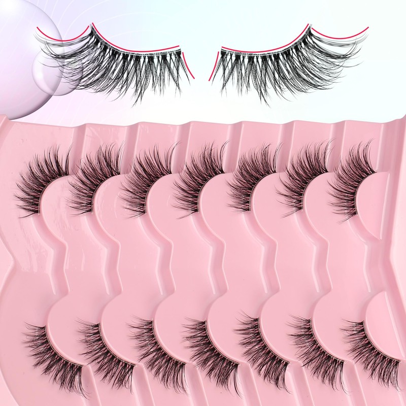 Gmagictobo False Eyelashes Natural Lashes Fluffy Half Lashes Cat Eye Short Wispy Clear Band Lashes Pack Fake Eyelashes 7 Pairs Multipack