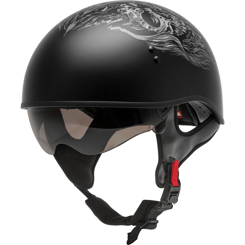 - LOW PROFILE: This low-profile motorcycle helmet provides a modern and sleek look while delivering the protection, comfort and features of a larger motorcycle helmet. The HH-65 is an essential addition to any enthusiast's riding gear. This design features an old-school, tattoo-style skull for extra appeal.
