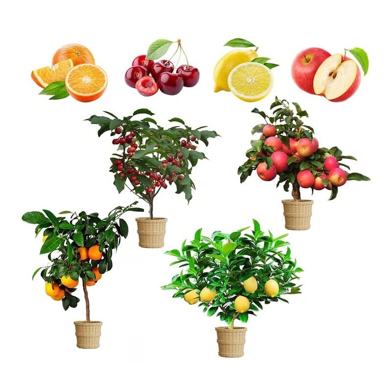 Mix Dwarf Bonsai Fruit Tree Seeds for Planting, 50+ Lemon Tree Seeds 50+ Cherry Tree Seeds 50+ Orange Tree Seeds 50+ Apple Seeds, 4 Variety Individual Packs, Organic Heirloom Fruit Seeds