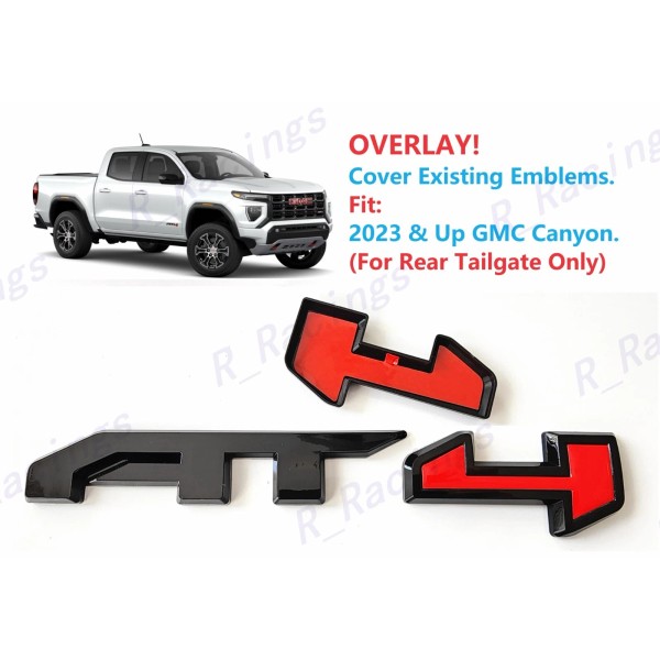 GMC 1PC Gloss Black Red Rear Tailgate AT4 OVERLAY Emblems Badge 2023-2024 Canyon AT4