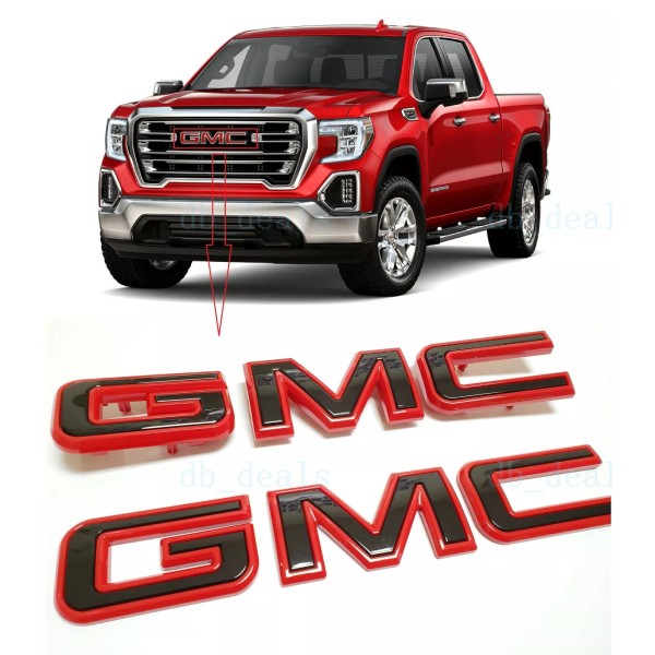 GMC 2PC Front Rear Red Black Emblem 2019-2024 GMC Sierra 1500 2500HD 3500HD Canyon
