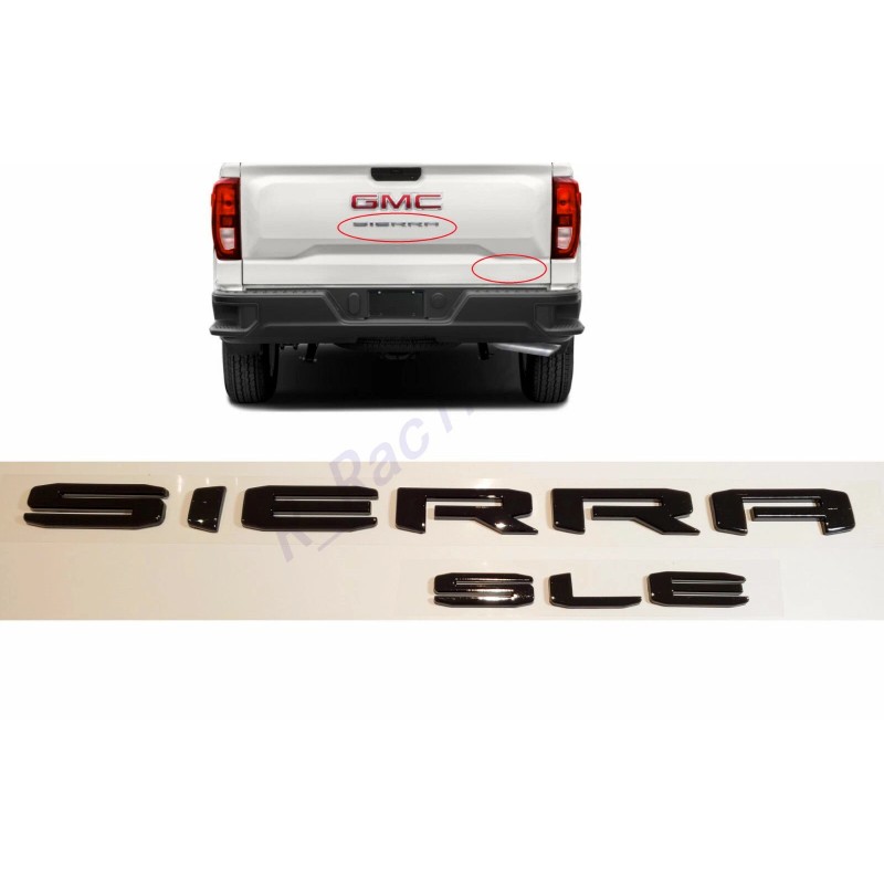 GMC 2PC Set GLOSS BLACK 2019+ GMC SIERRA SLE LETTER EMBLEM 1500 2500 3500 AT4 DENALI