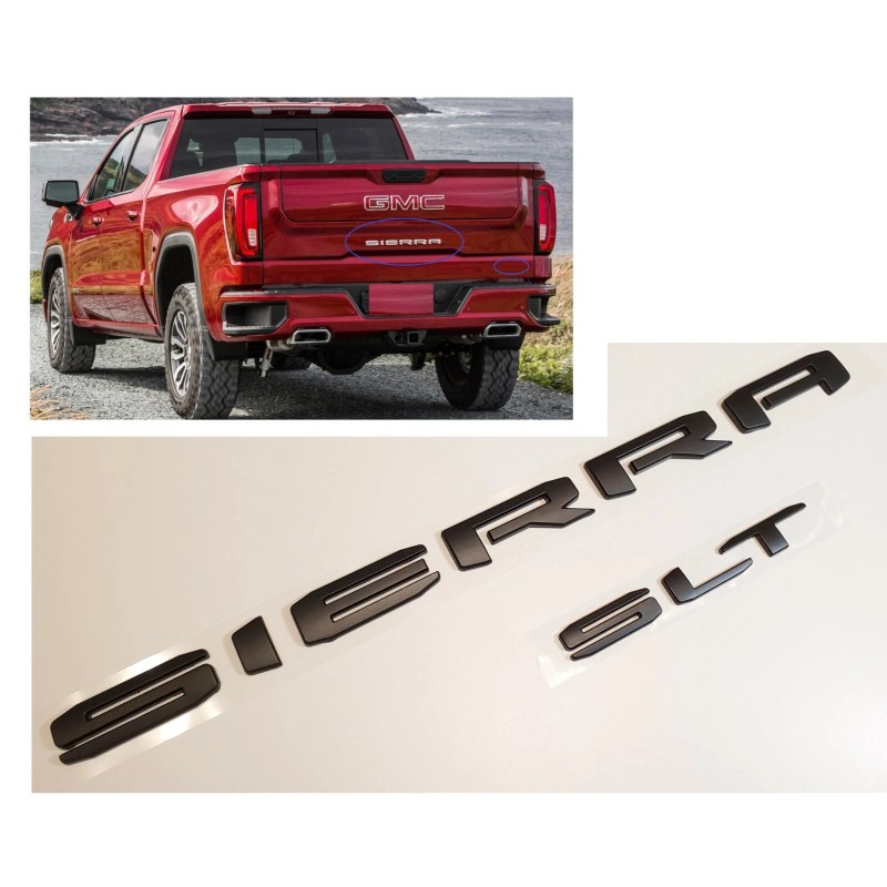 GMC 2PCS Matte Black Rear Tailgate SIERRA SLT Emblem GMC Sierra 1500 2500hd 3500hd