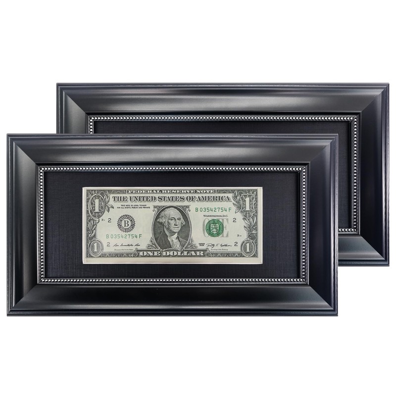 GMFrames Black Dollar Bill Frame with Black Mat or Display 4x9 Picture without Mat,Real Glass,2 Pack