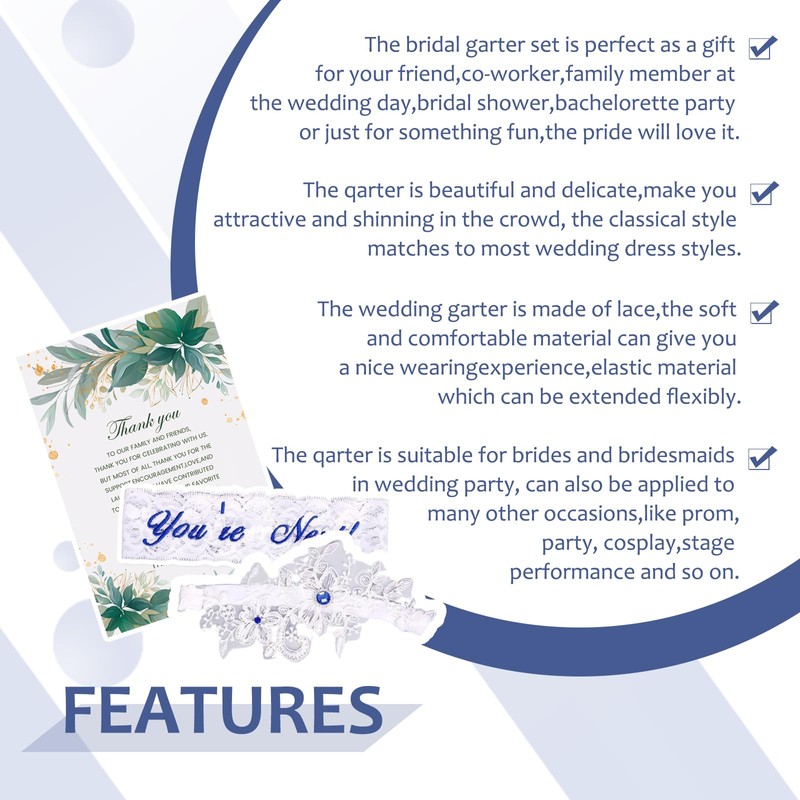 - ➤Precious Gift: Our blue garter is a thoughtful gift for brides or girlfriends, helping you show your confidence and charm at important moments. Wearing bridal garter will make you full of confidence and charm on important days.