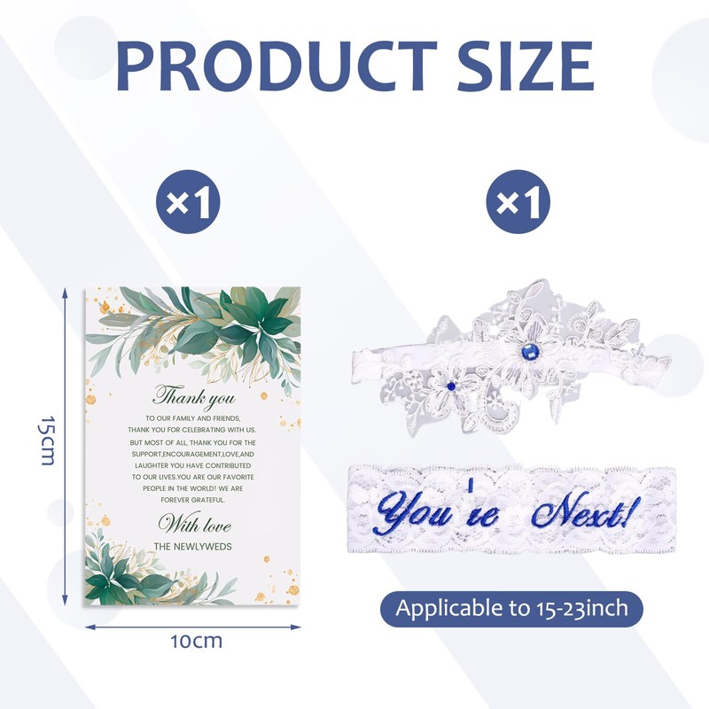 Package contents: 2* Wedding garters for brides + 1* Thank you card