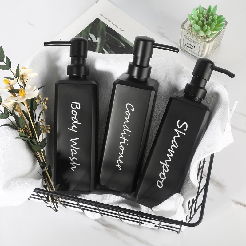 - 【Keep Your Bathroom Organized and Stylish】GMISUN black shampoo and conditioner dispenser perfectly matching various bathroom styles and making your countertop look high-class without feeling crowded or messy. The uniform design add a touch of elegance to your bathroom décor. Shampoo bottles with square design ensures they can be neatly arranged together on your bathroom countertop, saving more space compared to the round one.