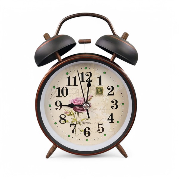 GMMH Retro Analogue Alarm Clock, No Ticking, Table Clock, Bedside Clock, Double Bell Alarm Clock (14-85) Vintage Retro Nostalgia Metal Antique Standing Clock Desk Clock Table Alarm Clock with Alarm