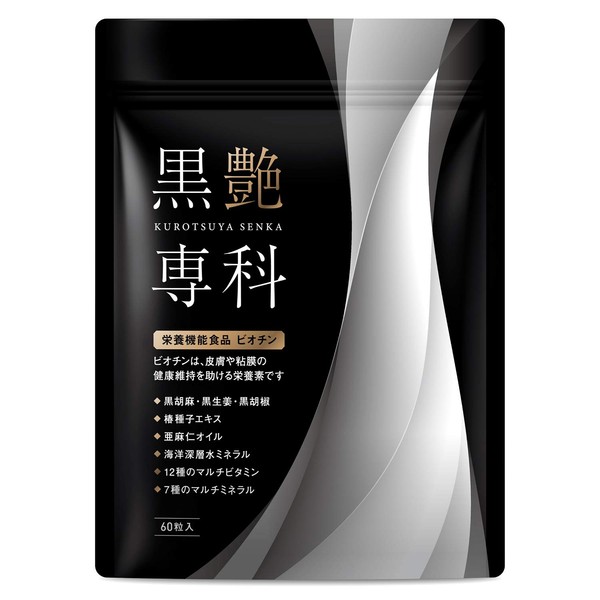 黒艶専科 黒髪サプリ( セサミン / ビオチン ) 黒髪 白髪 サプリメント ( 管理栄養士監修 / GMP認定工場 / 30日分60粒) 黒ゴマ 海藻エキス 葉酸 カルシウム 生姜 椿 アミノ酸 ビタミン ミネラル 亜麻仁油