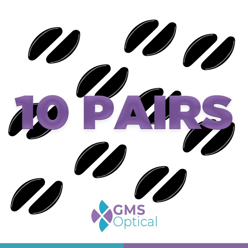 GMS Optical 1.8mm Reg-Thin/19mm Long Length - Anti-Slip Adhesive Contoured Soft Silicone Eyeglass Nose Pads with Super Sticky Backing (2 sets / 5 Pack)(10 Pair)(Black)