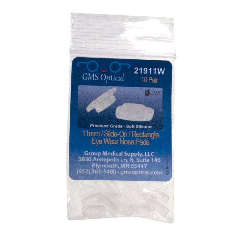 GMS Optical Soft Silicone Push-in Rectangle Nose Pads for Glasses, Sunglasses, and Eye Wear -11mm (10 Pair)