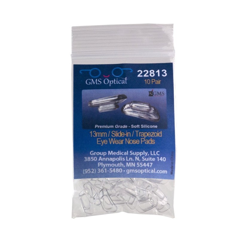 GMS Optical« Soft Silicone - Trapezoid Shaped Clear Silicone Slide-in Nose Pads - 12.4mm (10 Pair)