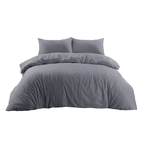 GMTEXTILES 100% polyCotton Bedding Duvet Cover Sets. (Single, Grey)