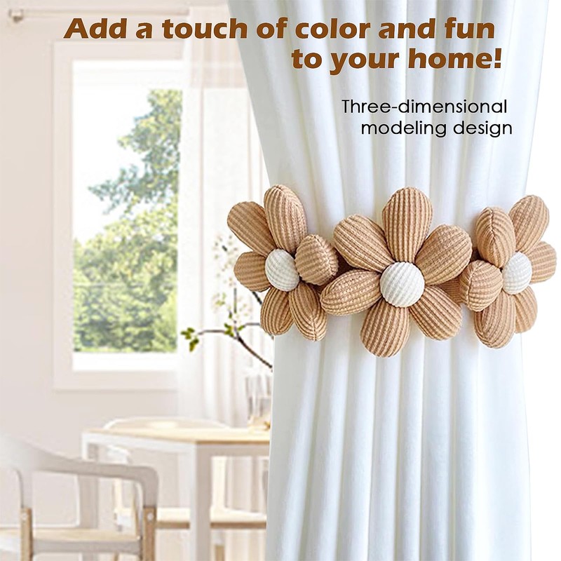 GmwyCzV Pack of 2 Flower Curtain Tiebacks, Khaki Elastic Tiebacks, Decorative Curtain, Rope Curtain Buckles with Adjustable Straps, Curtain Ties for Home, Office, Living Room, Window Decoration