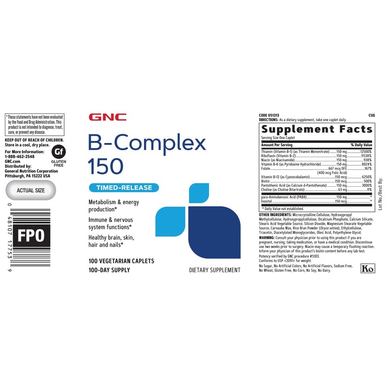 - GNC B-Complex 150: Timed-Release Metabolism & energy production*