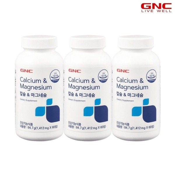 GNC Calcium & Magnesium 60 tablets 3 bottles / GNC 칼슘 앤 마그네슘 60정3병