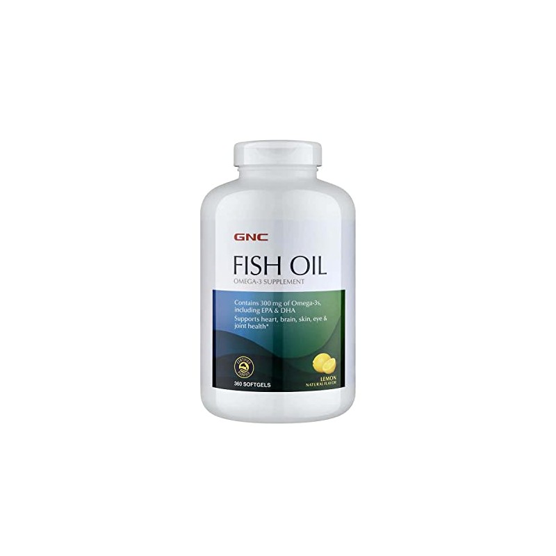 - GNC Fish Oil: Omega-3 Supplement Contains 300 mg of Omega-3s, including EPA & DHA Supports heart, brain, skin, eye & joint health* Lemon Natural Flavor Purified to reduce contaminants such as heavy metals, dioxins and PCBs From wild, deep ocean fish