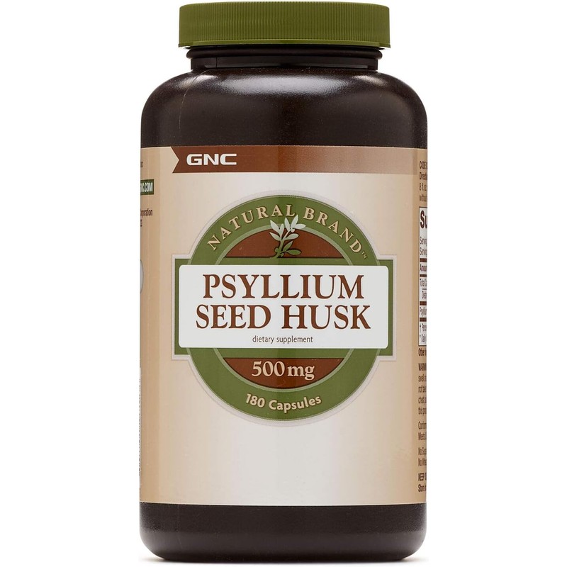 GNC Natural Brand Psyllium Husk Seed 500mg, 180 Capsules | Supports Digestive Health & Regularity | Dietary Fiber Supplement